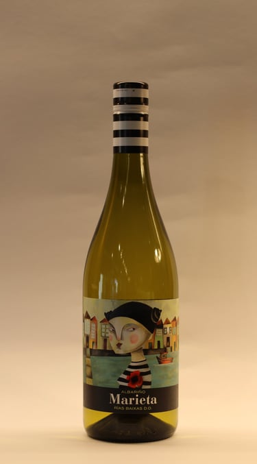 Un vino blanco de la DO Rías Baixas, elaborado con uvas Albariño. Con aromas a frutas cítricas, melocotón y un toque mineral. Fresco, con una acidez vibrante y un final largo y elegante.